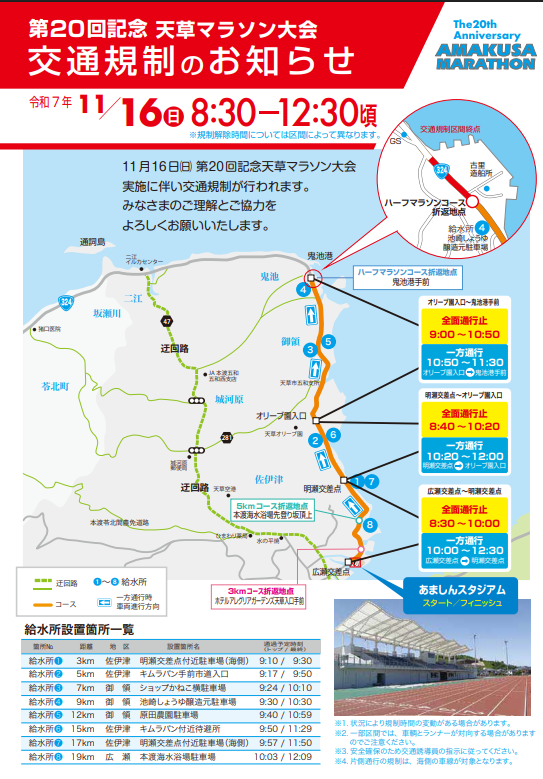 11/16(日)天草マラソン大会に伴う交通規制のお知らせ